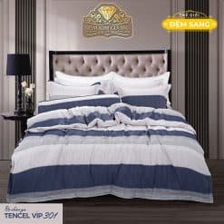 Hiện đại và tối giản có lẽ là những tính từ chính xác nhất dành cho bộ chăn ga gối Kim Cương Tencel VIP mã số 301 này.