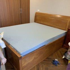 Đệm có một lớp vải thun co giãn được bọc bên ngoài ruột đệm giúp bảo vệ đệm được tốt hơn.